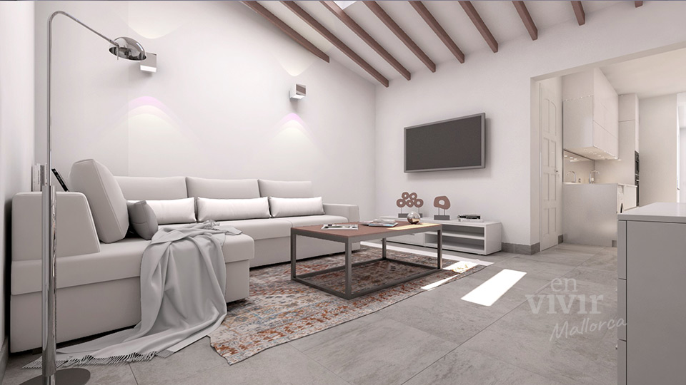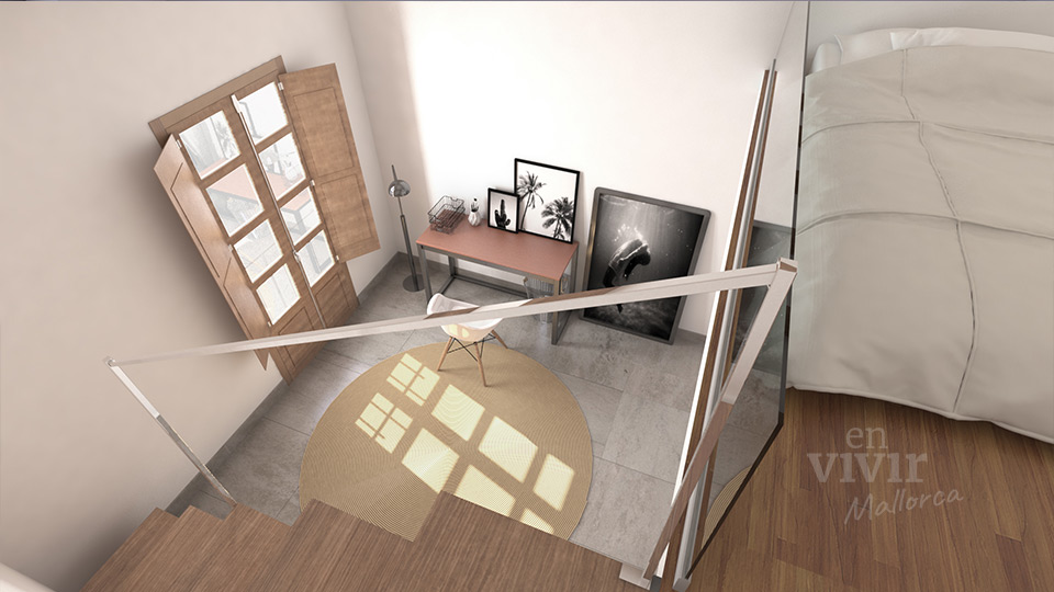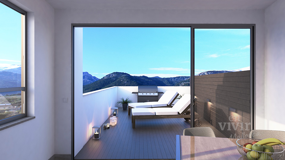 Diseño interior de un ático con terraza solarium en Campanet, Mallorca