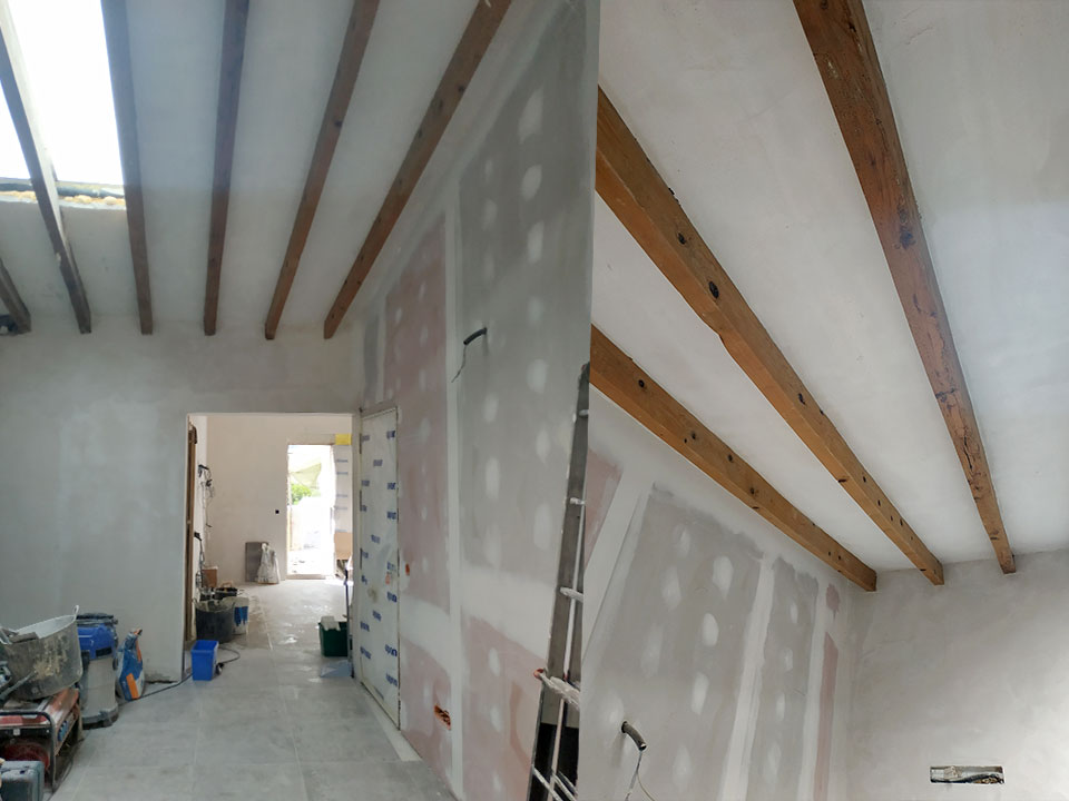 Con gran atención al detalle, hemos renovado este tradicional ático mallorquín en el pueblo de Campanet. Nuestros interioristas han creado un diseño moderno y minimalista, manteniendo elementos tradicionales. Las vigas originales de madera natural han sido restauradas, lijadas, impregnadas y barnizadas. La terraza azotea, nuevamente impermeabilizada y embaldosada, presenta fantásticas vistas a la sierra de Tramuntana. Todas las instalaciones como de agua, electricidad, calefacción y aire acondicionado del piso han sido renovadas y adaptadas a estándares modernos.